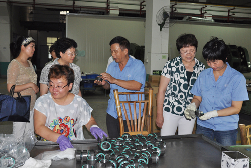 2015年8月5日下午,中華全國總工會(huì)女職工委員會(huì)常委周樂紅、倪燕芳帶領(lǐng)全國總工會(huì)“單獨(dú)兩孩”政策專題調(diào)研組在省總工會(huì)、市總工會(huì)相關(guān)領(lǐng)導(dǎo)陪同下到公司調(diào)研。在公司工會(huì)主席張?zhí)┥⒊?wù)副主席洪麗玲陪同下,調(diào)研組先深入車間一線生產(chǎn)現(xiàn)場(chǎng)走訪參觀,實(shí)地了解一線女職工工作環(huán)境與狀況,并同女職工親切交談,了解女職工勞動(dòng)保護(hù)、特殊權(quán)益保護(hù)等相關(guān)問題。
