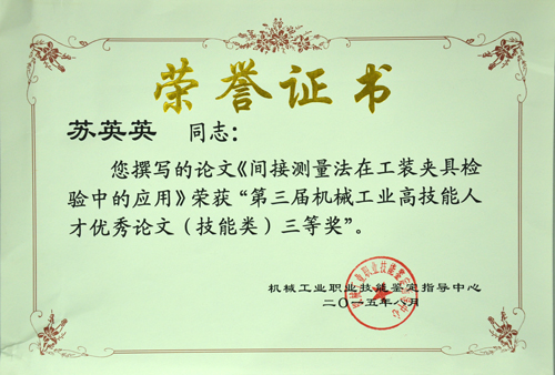 近日,第三屆機(jī)械工業(yè)高技能人才優(yōu)秀論文評(píng)選工作圓滿結(jié)束。此次評(píng)選由機(jī)械工業(yè)職業(yè)技能鑒定指導(dǎo)中心主辦,行業(yè)協(xié)會(huì)、企業(yè)專家組成的評(píng)審專家委員會(huì)對(duì)140余篇論文進(jìn)行了專業(yè)評(píng)審。公司員工蘇英英撰寫的《間接測(cè)量法在工裝夾具檢驗(yàn)中的應(yīng)用》獲得技能類論文三等獎(jiǎng),鐘華撰寫的《改進(jìn)檢查方法,提高推力軸承產(chǎn)品球徑尺寸的互換性》獲得技術(shù)類論文優(yōu)秀獎(jiǎng)。此外,公司技能鑒定站站長洪麗玲也榮獲機(jī)械工業(yè)高技能人才培養(yǎng)優(yōu)秀組織者。