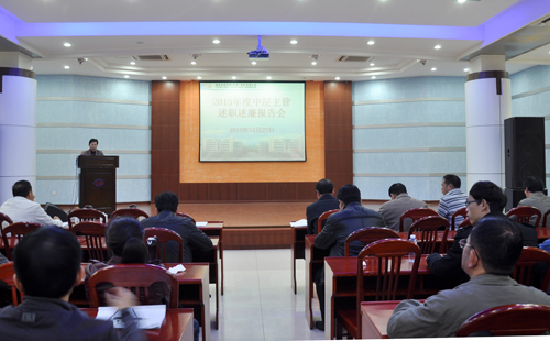 2015年12月27日,公司在俱樂部會(huì)議室召開 2015 年度中層主管述職述廉報(bào)告會(huì)。黨委副書記張?zhí)┥鞒謺?huì)議,公司高管及全體中層主管參加了會(huì)議。會(huì)上46名中層主管分別代表部門、車間以 PPT 形式作述職述廉報(bào)告。
