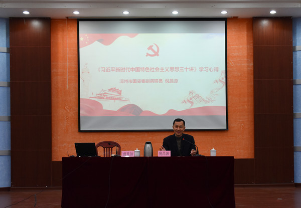 為進(jìn)一步興起習(xí)近平新時(shí)代中國(guó)特色社會(huì)主義思想 “大學(xué)習(xí)”熱潮,2018年12月28日晚,龍軸集團(tuán)在俱樂部會(huì)議室組織開展專題黨課講座。集團(tuán)黨委書記、董事長(zhǎng)曾凡沛作了題為《充分認(rèn)識(shí)政治建設(shè)是黨的建設(shè)的首要建設(shè)》專題黨課,同時(shí)邀請(qǐng)漳州市國(guó)資委副調(diào)研員倪昌源講授《<習(xí)近平新時(shí)代中國(guó)特色社會(huì)主義思想>三十講學(xué)習(xí)心得》。集團(tuán)高管、各黨總支、黨支部書記及支委、中層以上管理人員共130余人參加了黨課學(xué)習(xí)。