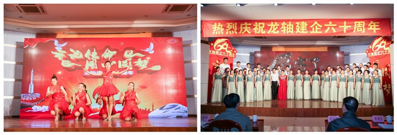 隨后,到場(chǎng)人員觀看建企60周年紀(jì)錄片,共同重溫龍軸走過的60年不平凡歲月;快板表演《牢記使命 同心圓夢(mèng)》以朗朗上口的語言、歡快的節(jié)奏點(diǎn)燃了龍軸60華誕的喜慶氛圍;員工大合唱《不忘初心》、《唱響明天》把慶祝大會(huì)的氣氛推向高潮。