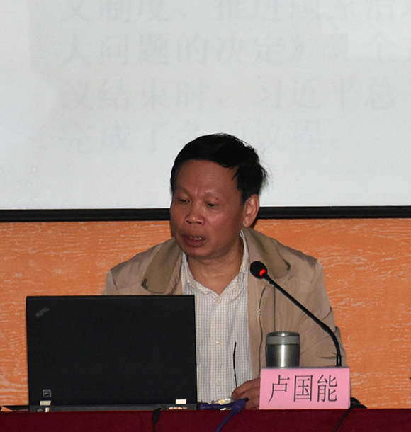 接著,盧國(guó)能教授從“為什么要堅(jiān)定中國(guó)特色社會(huì)主義制度自信”“中國(guó)特色社會(huì)主義制度還需不斷完善和發(fā)展”“加強(qiáng)黨的領(lǐng)導(dǎo)、確保各項(xiàng)目標(biāo)任務(wù)全面落實(shí)到位”三個(gè)方面闡述了《中共中央關(guān)于堅(jiān)持和完善中國(guó)特色社會(huì)主義制度、推進(jìn)國(guó)家治理體系和治理能力現(xiàn)代化若干重大問(wèn)題的決定》的深刻內(nèi)涵。