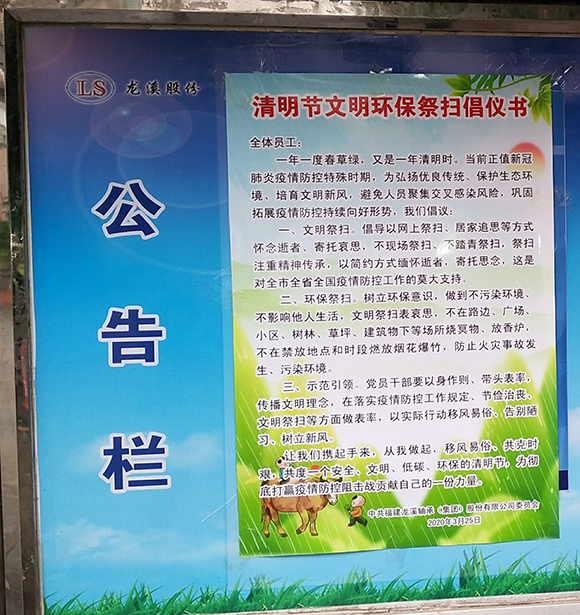 ????清明節期間,為了弘揚時代新風,推進移風易俗,做好疫情防控工作,福建龍溪軸承(集團)股份有限公司黨委在發出《清明節文明祭掃倡儀書》的同時,積極發起網上祭英烈活動,共有1636名員工(其中黨員478名)參與了中共福建省委文明辦在文明福建微信公眾號上發起的“網上祭英烈丨這個清明 讓我們一起緬懷英雄”活動,表達對抗疫烈士和革命先烈的感恩和敬仰之情,展現了龍軸人濃濃的愛國之情。