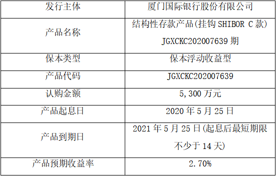委托理財(cái)受托方:廈門(mén)國(guó)際銀行股份有限公司(以下簡(jiǎn)稱“廈門(mén)國(guó)際銀行”)。