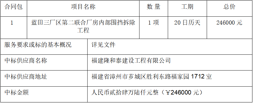 1、項目名稱:藍田三廠區第二聯合廠房內部圍擋拆除工程