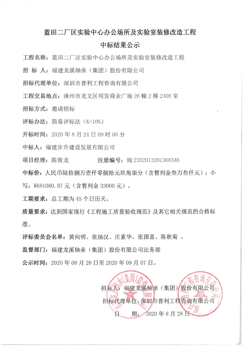 龍軸集團(tuán)藍(lán)田二廠區(qū)實(shí)驗(yàn)中心辦公場(chǎng)所及實(shí)驗(yàn)室裝修改造工程中標(biāo)結(jié)果公示