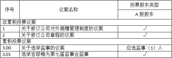 一、股東大會董事候選人選舉、獨立董事候選人選舉、監事會候選人選舉作為議案組分別進行編號。投資者應針對各議案組下每位候選人進行投票。