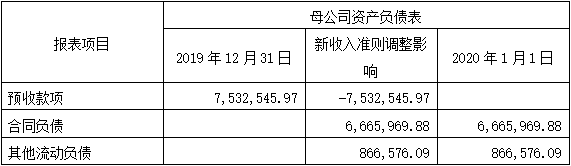 根據新收入準則及相關銜接規定,本公司自2020年1月1日起將原計入“預收款項”調整至“合同負債”及“其他流動負債”列報;其中,將原“預收款項”中涉及的增值稅額調整至“其他流動負債”列報,其余不含稅金額調整至“合同負債”列報。