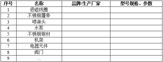 *設(shè)備退磁部分為線圈式退磁;采用不銹鋼網(wǎng)帶式傳輸鏈條,并配有噴淋裝置配合網(wǎng)帶的傳輸對零件進行噴淋清洗。設(shè)備總功率:≤30KW。