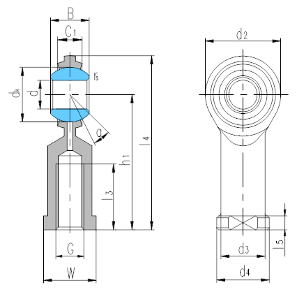 產品特點:擠壓桿端關節軸承桿端體材料是碳鋼,表面鍍鋅,擠壓成形,內圈材料是軸承鋼,淬火,球面鍍硬鉻。