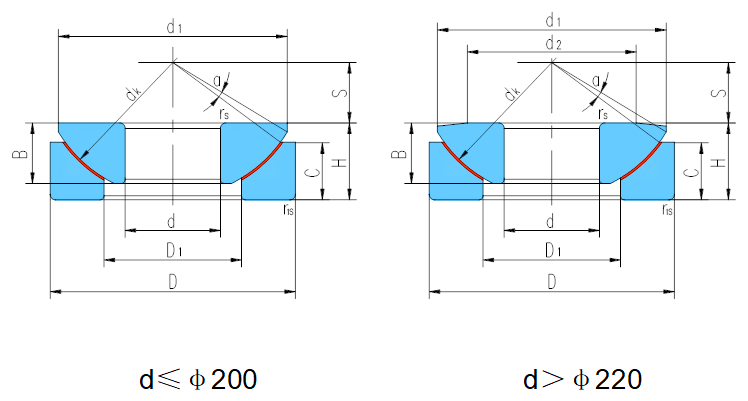 d | D | B | C | H | dk | S | d1 max | d2 | D1 min | rs,r1s min | α? ≈ | 動載荷 Dynamic | 靜載荷 Static | ||