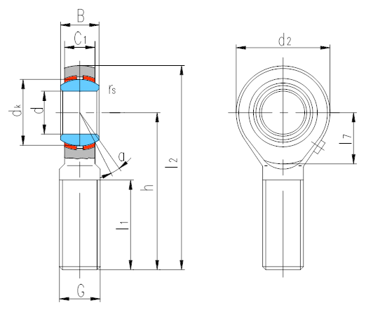 產品特點:鑲墊桿端關節軸承桿端體材料是碳鋼,表面鍍鋅,滑動表面鑲入青銅襯墊;內圈材料是軸承鋼,淬火,球面鍍硬鉻,除了孔徑小于6.35外,其余均可通過油杯潤滑。