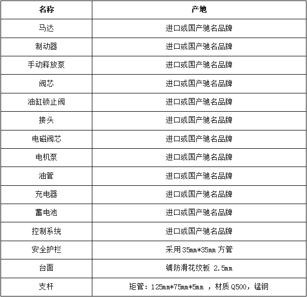 全電動自行走剪叉式高空作業(yè)平臺技術(shù)(協(xié)議)內(nèi)容要求