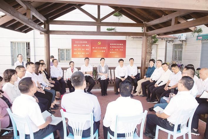 坐在同一條板凳上說話,與干部群眾面對(duì)面交流。市領(lǐng)導(dǎo)娓娓講述道,21年前的夏天,也就是2001年7月15日,在澳角村村民郭漢棟的小樓里,時(shí)任村黨支部書記的林亞民向時(shí)任福建省省長的習(xí)近平介紹“澳角村已從‘三不起’蛻變?yōu)椤目础保?dāng)時(shí)習(xí)近平同志描繪起新的小康藍(lán)圖,說“以后農(nóng)村的政策會(huì)一年比一年好”。今天,大家很高興來到澳角村,一起追尋習(xí)近平總書記的足跡,學(xué)習(xí)宣傳貫徹黨的二十大精神。