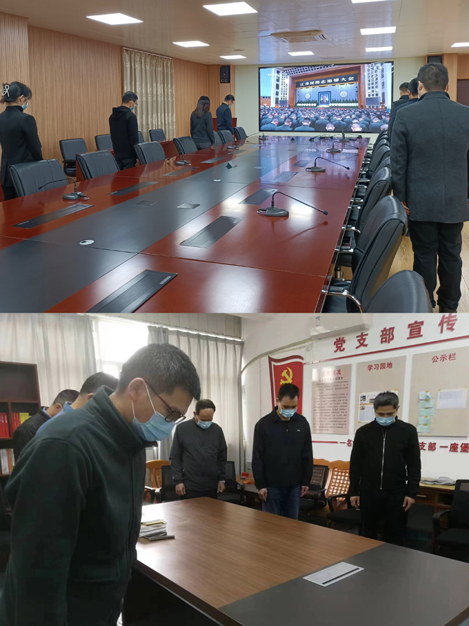 收聽收看過程中,大家悲痛肅立,在悲壯的哀樂聲中默哀三分鐘,認(rèn)真聆聽習(xí)近平總書記所致悼詞,追憶江澤民同志光輝的一生和建立的豐功偉績,深刻感悟江澤民同志的精神風(fēng)范。