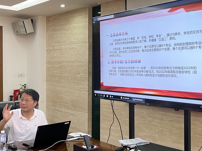 張躍豐結合歷年高考錄取大數據和事例,深入解讀了志愿填報的重要性、講解高考志愿填報方法和技巧,從“志愿選擇方向”“高考分數/位次轉換”“初步篩擇學校”“‘沖、保、墊’精選學校”“填好‘志愿填報分析一覽表’”“打好底稿,進行網上填報”等六方面為高考員工子女及家長進行指導,并面對面答疑解惑,受到了參會員工及其子女的一致好評。