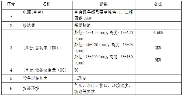 2)設(shè)備主要功能、配置要求及技術(shù)指標(biāo):