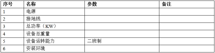 2.4設備其他技術指標:(需含設備總功率、電壓、電流、接口、環境溫度、場地等安裝環境有關要求)