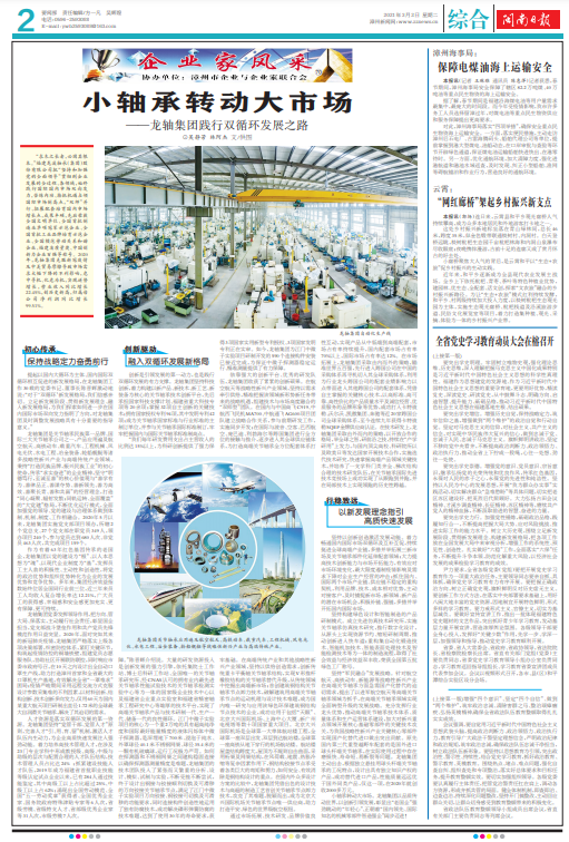 《閩南日報》2021年3月2日大篇幅報道龍軸集團踐行雙循環發展之路