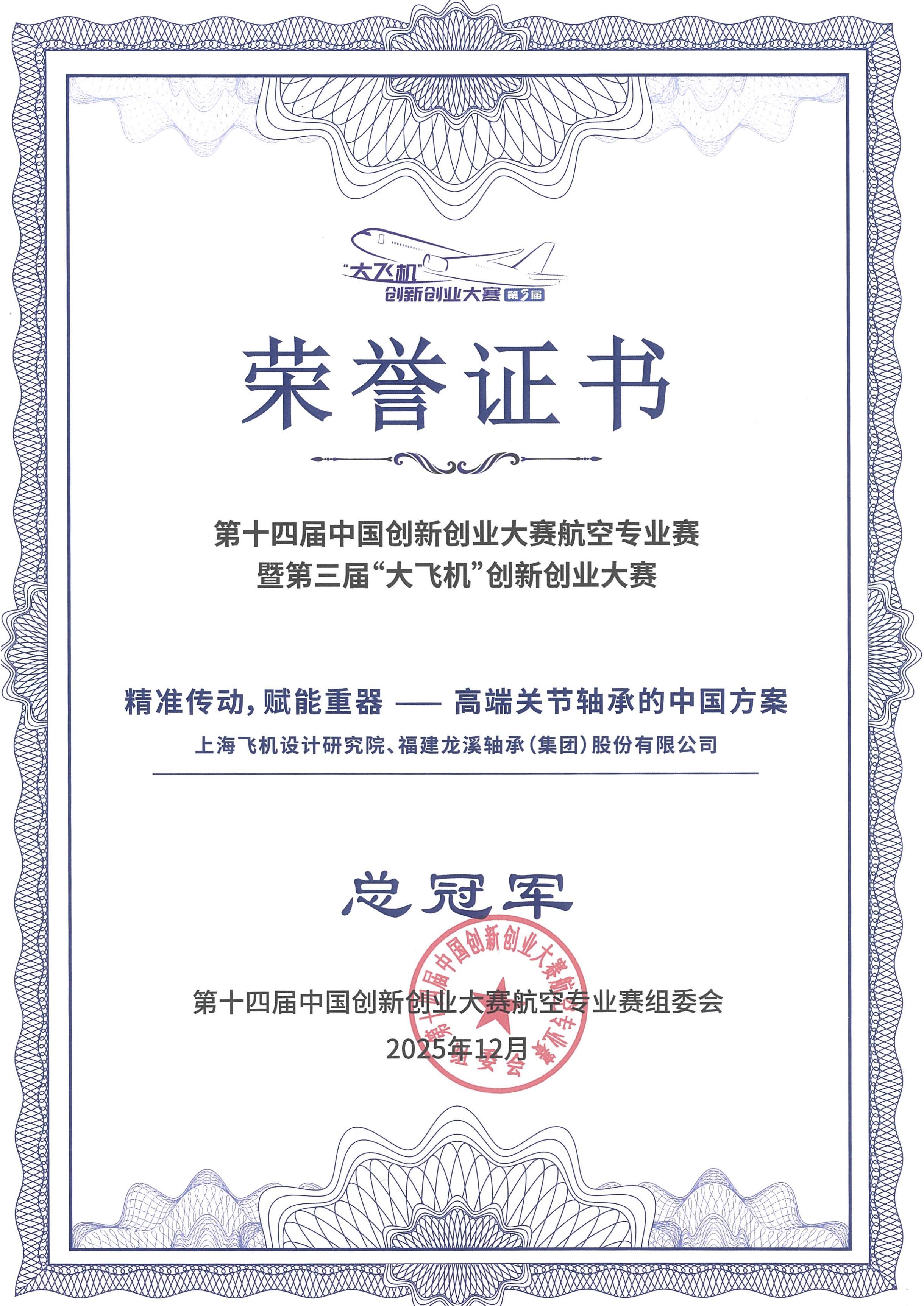 2025年12月,在第十四屆中國(guó)創(chuàng)新創(chuàng)業(yè)大賽航空專業(yè)賽暨第三屆“大飛機(jī)”創(chuàng)新創(chuàng)業(yè)大賽總決賽上,公司《精準(zhǔn)傳動(dòng),賦能重器——高端關(guān)節(jié)軸承的中國(guó)方案》項(xiàng)目從全國(guó)333個(gè)項(xiàng)目中脫穎而出,問(wèn)鼎總冠軍。公司深度融入大飛機(jī)產(chǎn)業(yè)鏈體系,加速推進(jìn)自主可控的全國(guó)產(chǎn)化替代,助力大飛機(jī)產(chǎn)業(yè)高飛遠(yuǎn)航、布局未來(lái)。