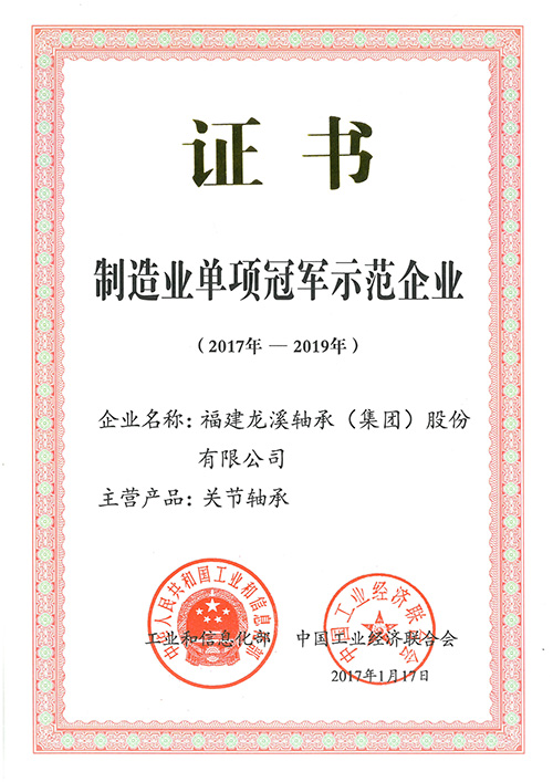 創新發展戰略,優化產業結構。將集團戰略與《中國制造2025》等國家戰略高度融合,著力實施“一基多元、兩大轉變、三個目標、四種手段”的“十二五”總體發展戰略,立足關節軸承主業,拓展機械零部件相關業務,優化產業結構,創建新增長點,不僅榮獲 “制造業單項冠軍示范企業”稱號(全國軸承行業唯一一家),而且成為全球三家最重要的關節軸承制造商之一,產品廣泛應用于各類機械設備及國家重點工程如天宮、天眼、大飛機、上海中心大廈等,大量出口四十多個工業發達國家和地區。
