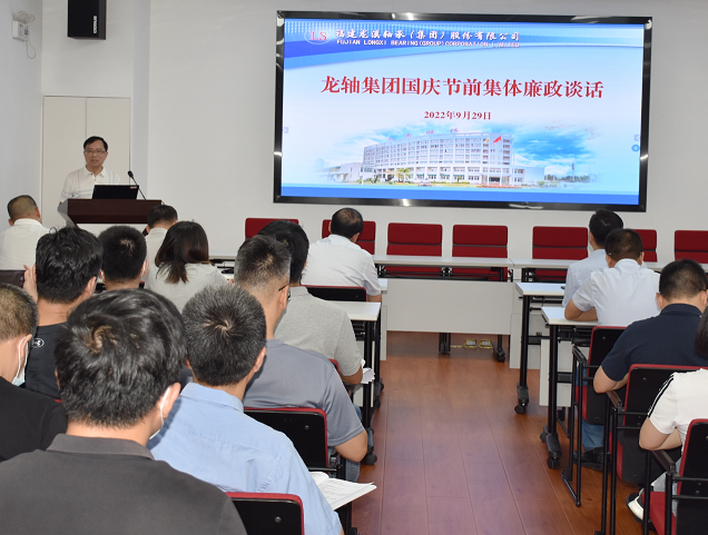 為進一步促進黨員領導干部廉潔自律,持續凈化良好節日風氣,以實際行動迎接黨的二十大勝利召開,9月29日,龍軸集團召開國慶節前集體廉政談話,將監督關口前移,及時“提神補鈣”,擰緊廉政“發條”,筑牢廉潔第一道“防火墻”。