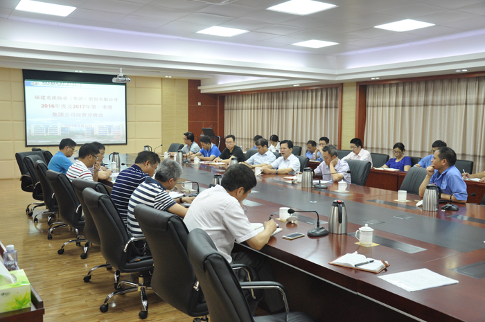 ????2017年5月12日,公司總會計師、董事會秘書曾四新主持召開2016年度及2017年第一季度集團公司經營分析會。集團公司董事長曾凡沛、總經理陳晉輝、監事會主席鐘志剛、集團各高管及永軸、三齒、紅旗、閩臺龍瑪、金昌龍、金馳等7家主要子公司高管及集團公司發展計劃部、企業管理部、董事會辦公室、人力資源部、投資管理部、證券管理部、物資采購部、營銷中心、國際市場部、國內市場部、生產部、財務會計部、審計部、監察室等部門主管參加會議。