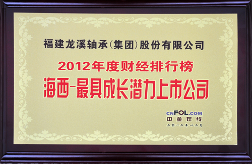 近期,公司獲得由中金在線主辦,基金網、黃金網以及外匯網協辦的中金在線財經排行榜“2012年度海西-最具成長潛力上市公司”稱號。