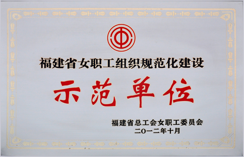 長期以來,公司女職工委員會以《中國工會章程》、《福建省女職工勞動保護條例》、《企業工會工作條例》為指導,團結和帶領廣大女職工積極投身到生產經營和各項工作中,深入開展了豐富多彩的各項活動,充分發揮女職工在企業建設中的作用,為公司持續、穩定、協調發展做出了積極的貢獻。被評為福建省首批“女職工組織規范化建設示范單位”。