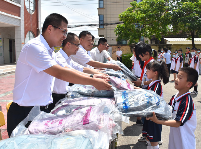 在“助力鄉(xiāng)村振興捐贈儀式”上,劉明福、王志劼代表公司向埭尾村捐贈12萬元,用于埭尾村路燈設施工程建設,為幫助照亮埭美古村旅游之路做出龍軸貢獻。隨后,劉明福一行移步埭尾小學開展歡慶“六一”國際兒童節(jié)助學捐贈活動,代表公司向校方捐贈了3萬元改善教學條件資金,為全校181名學生購買了新書包,并給予6名困難學生共6000元助學金。望著孩子們一張張陽光燦爛的笑臉,劉明福一行勉勵孩子們勤奮學習、立志成才,以優(yōu)異的成績回報家鄉(xiāng),同時向辛勤耕耘、播灑未來的老師們致以了崇高的敬意。