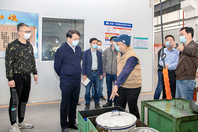 之后,倪昌源一行深入藍田二廠區、藍田三廠區等各廠區及車間內部檢查疫情防控、安全生產和創城工作落實情況。