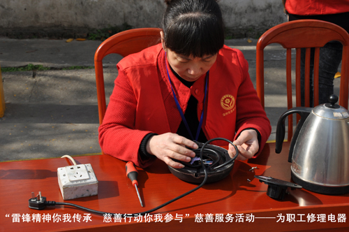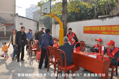 為迎接3月5日第50個“學雷鋒紀念日”暨第13個“中國青年志愿者服務日”的到來,弘揚“奉獻、友愛、互助、進步”的志愿者精神,進一步營造公司志愿服務的濃郁氛圍,2013年3月4日上午,公司慈善義工分隊在俱樂部籃球場開展 “雷鋒精神你我傳承  慈善行動你我參與”慈善服務活動。為社區居民提供電器檢查維修服務、健康保健咨詢義診服務、愛心理發服務、防火防盜咨詢服務等志愿服務活動。