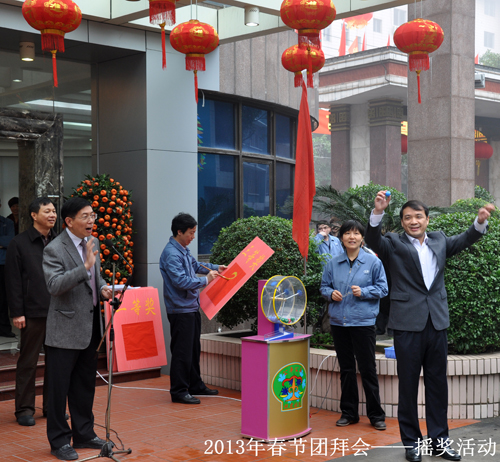 2月6日上午,一年一度具有龍軸特色的“春節(jié)團拜會”在公司總部召開,公司高管及2000多名在職、離退休員工相聚一堂,共慶佳節(jié)。會上,公司黨委書記、董事長曾凡沛代表公司黨委、總部發(fā)表新春致辭,員工代表張高德也代表全體員工做了發(fā)言。抽獎活動總是團拜的壓軸好戲,大家的情緒隨著搖獎機歡快的“噼里啪啦”聲高漲起來,每搖出一個號,就引來歡呼聲一片,現(xiàn)場熱鬧非凡!